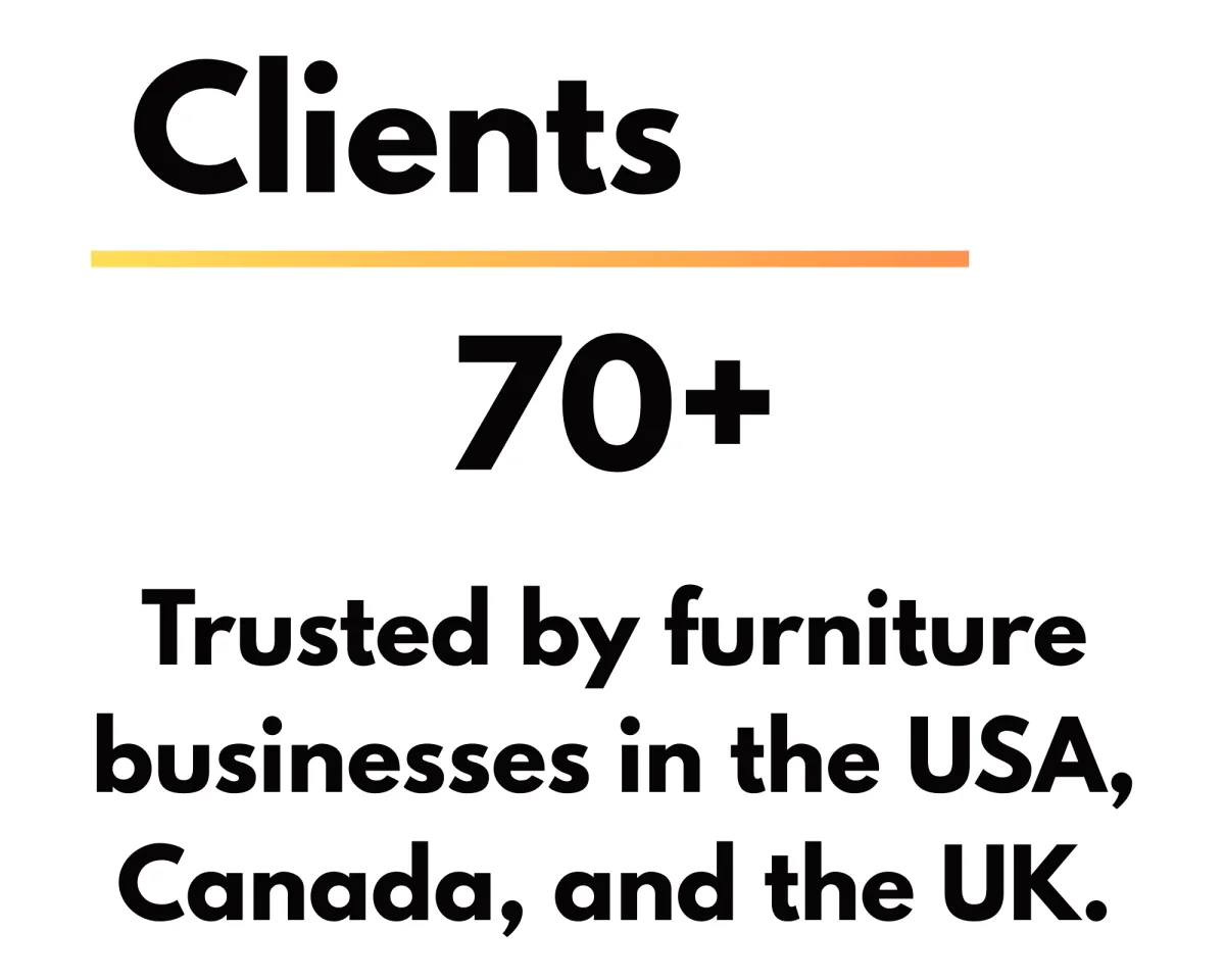 After 7 years of running his own furniture business, he and his team are now helping other furniture businesses copy his tactics to scale in the competitive world of furniture sales. We work with businesses as small as $200k per year, to businesses doing north of $20 million per year.